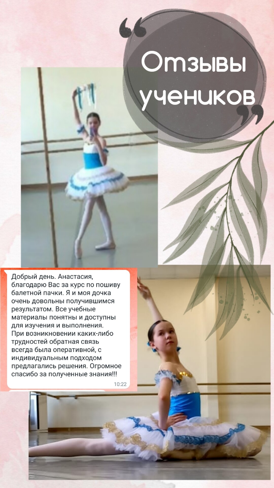 Делаем фото и видео результатов проделаной работы. Получаем бонусы про хранение балетных пачек и как вам называть цены за изготовление пачки.